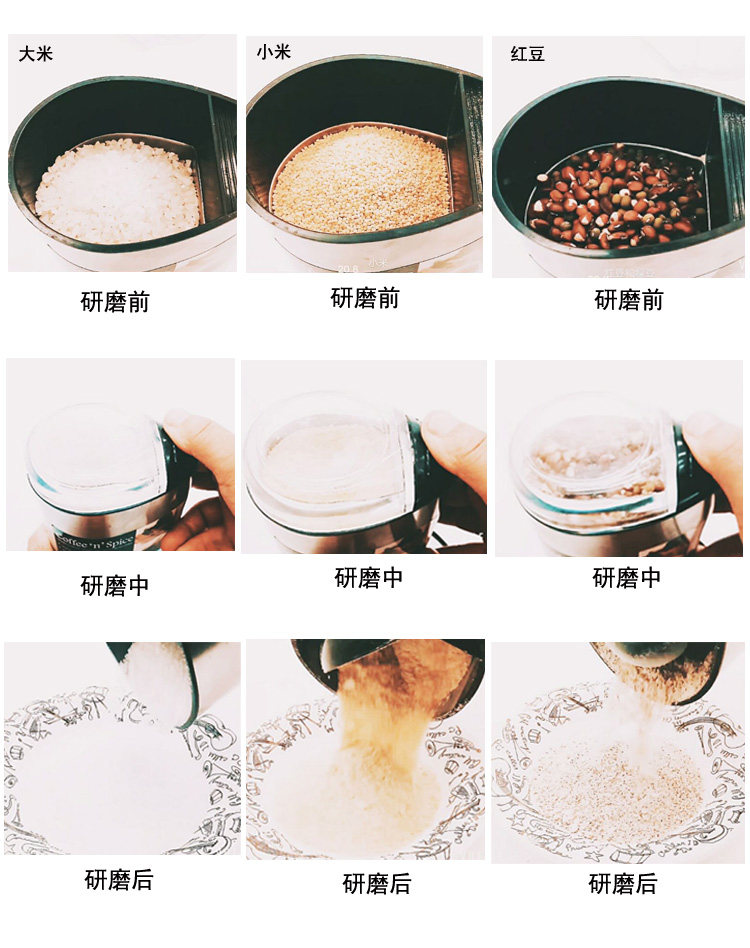 Can grind soybean soybeans green beans red beans! And other grains! You can also grind sesame, pepper...