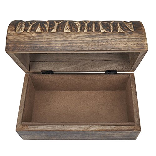 -. Feature : Dimension - Length - 9 inches x width - 5 inches x Height - 5.5 inches / MANGO WOOD: As it is so beautiful, so is it highly durable. For its dense grains, stain and dust resistance and sustainability, a large of number of Indian artisans go only for mango wood / INTRICATE HANDCRAFTED DESIGN: The intricate design has been finely handcrafted with hand-finished patterns / STORE IN STYLE: Store your fondest memories, jewelry, accessories pictures, trinkets and souvenirs in this storage box / GIFTING: This timeless keepsake box will make for a great gift for your loved ones . HAMPER: Bring your love, imagination and hospitality to the mix and put it in this keepsake box to make your guests and loved ones feel pampered with a gift hamper