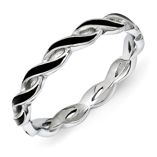 -. Title : Sterling Silver Black Enamel Ring by Stackable Expressions