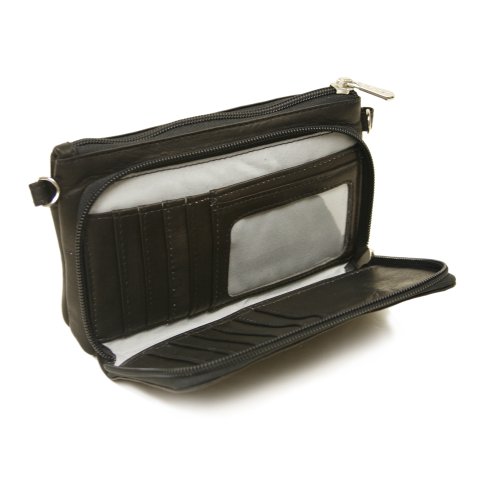 Piel Leather Shoulder Bag Wristlet, Chocolate, One Size