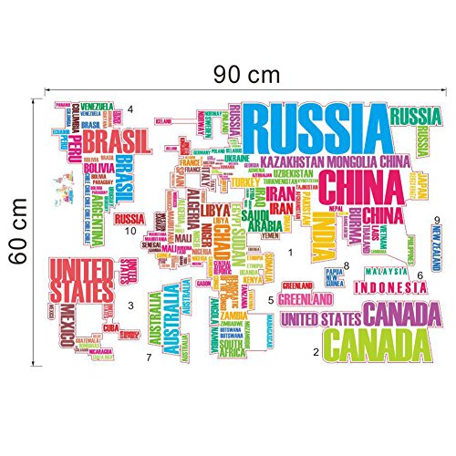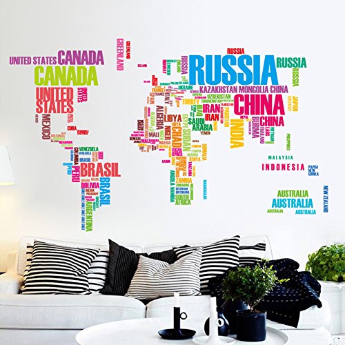 -. Title : Adeeing Words World Map Removable Mural DIY Door Wall Stickers Decal Art Decor and Wall Treatments Stickers for Classroom Home Girls Kids Living Room Bedroom Decoration, 23.6x35.4Inches