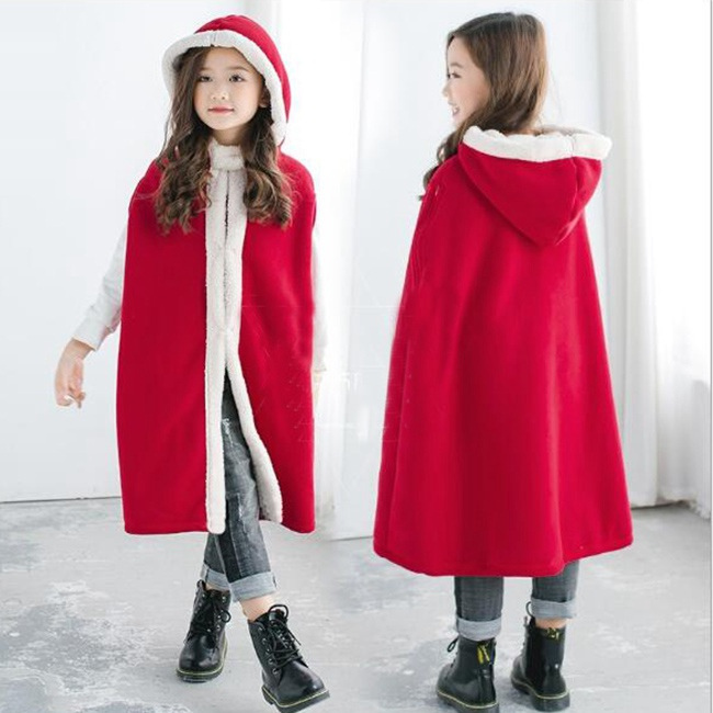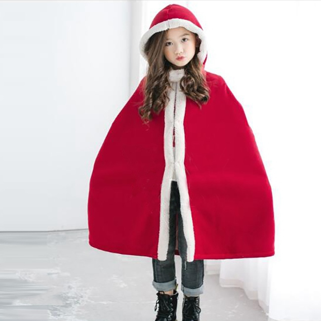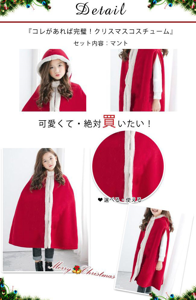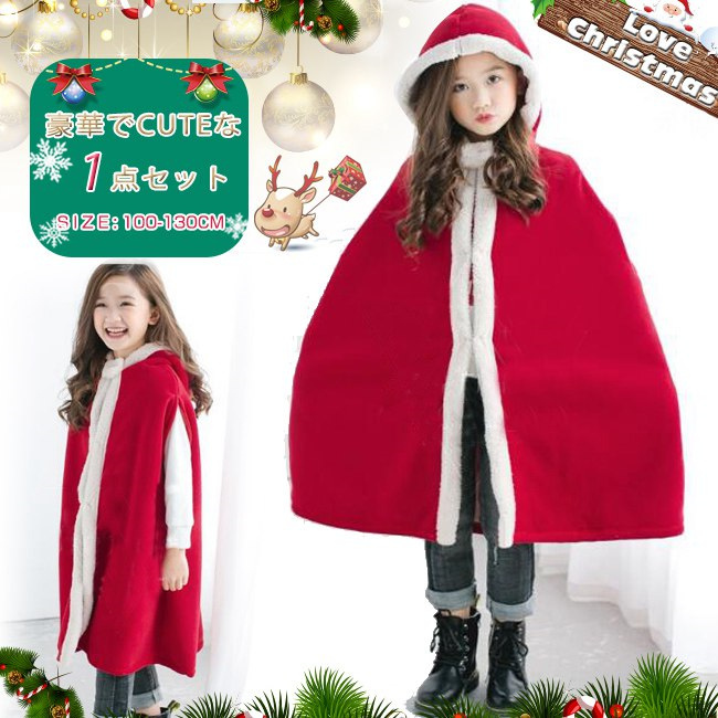 クリスマス 衣装 子供 マント ポンチョ フード付き 裏ボア 厚手 女の子 男の子 キッズ 子ども かわいい 服 コスプレ 仮装 変装 パーティーグッズ イベント用品 防寒 暖かい あったか レッド 赤 xmas Christmas cos