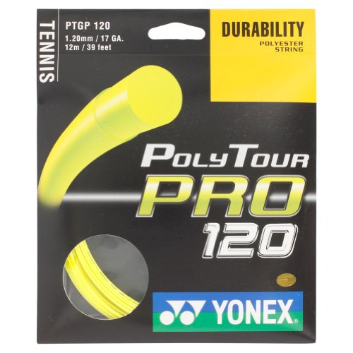 Studio : Yonex Publisher : Yonex Binding : Misc. Product Description The YONEX Poly Tour Pro 120 17G Tennis String Flash Yellow is a great addition to the Yonex string line Its a solid choice for players with long swings looking for durability and spin potential Construction Monofilament PolyesterColor YellowGauge 17G 120mmLength 39 0