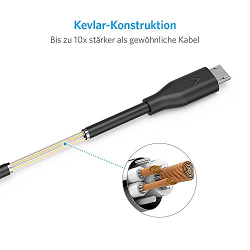 Anker PowerLine Micro USB (6ft) - Durable Charging Cable, with Kevlar Fiber and 10000+ Bend Lifespan for Samsung, Nexus, LG, Motorola, Android Smartphones and More