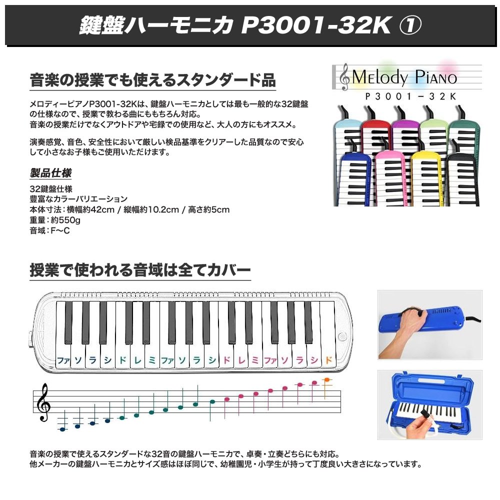 Kc Keyboard Harmonica (Piano Melody) Black P3001-32k/bk