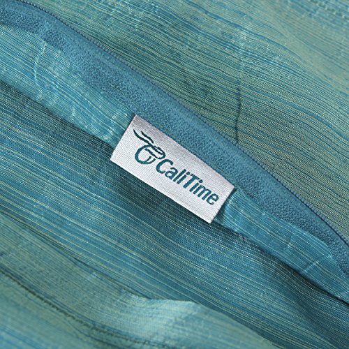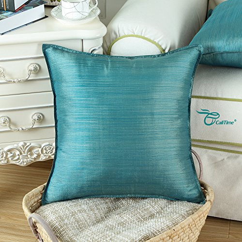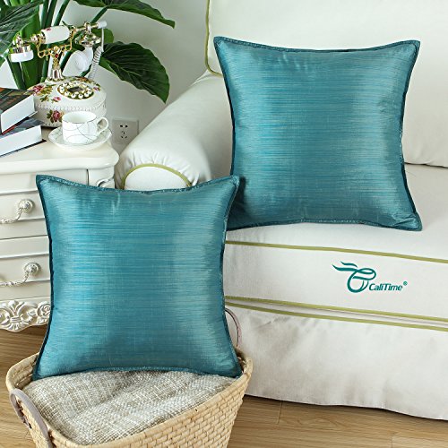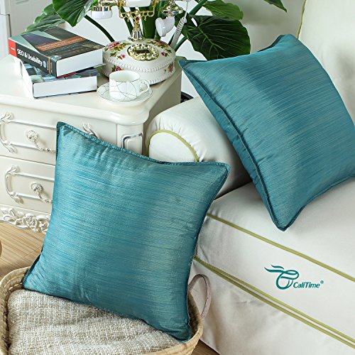 Pack of 2, CaliTime Cushion Covers Throw Pillow Cases Shells Modern Silky Light Weight Dyed Stripes, 18 X 18 Inches, Teal