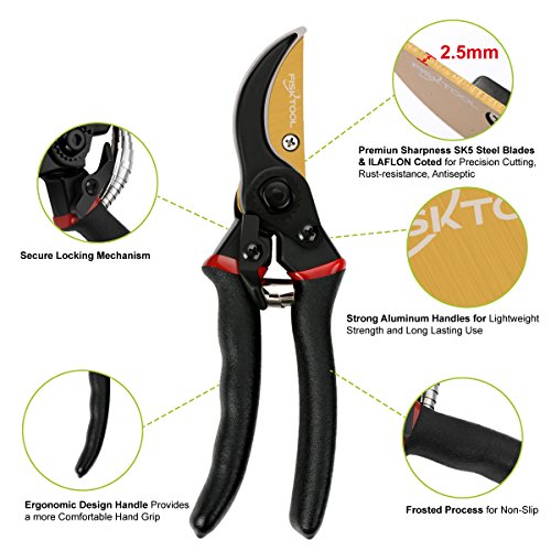 - HIGH CARBON STEEL BLADES - Quality blade made of high carbon Premium Titanium steel with chromium-plating technology. Premium Titanium steel blades are ultra strong, stays sharper than your ordinary blade and lasts even longer! Single blade and blade slot design, avoid blade dislocation. No more worrying about a pruning shear blade that might become dull after just a few cuts