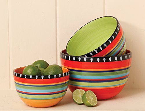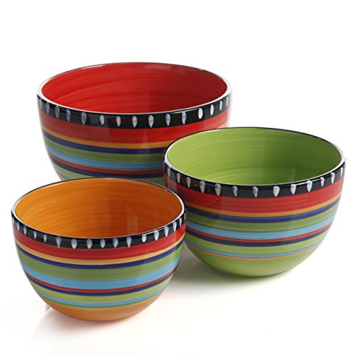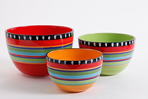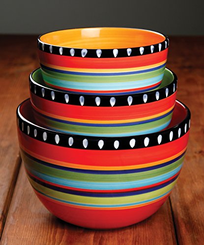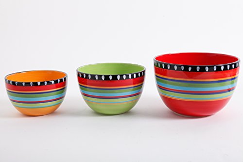 Gibson Elite Pueblo Springs 3 Piece Bowl Set, Bright Hand Painted Designs
