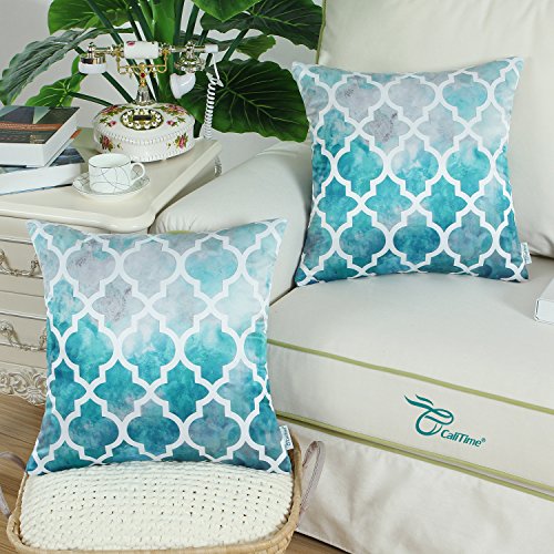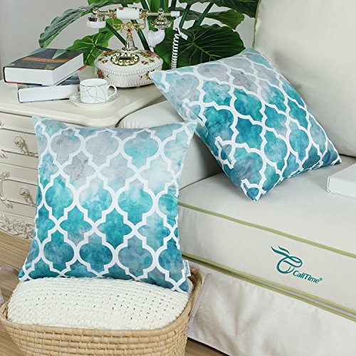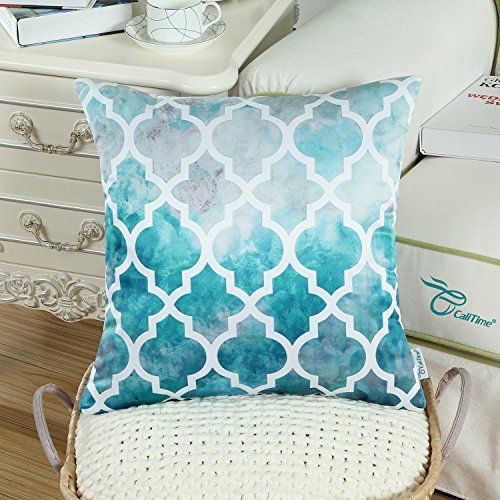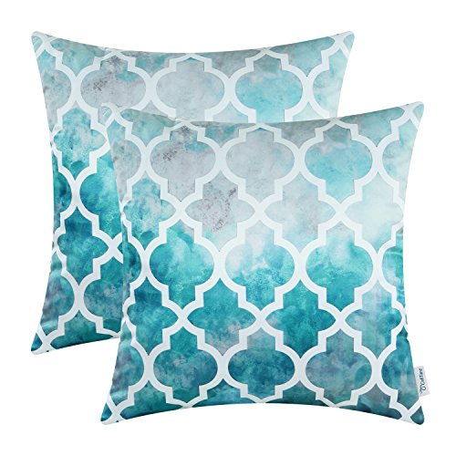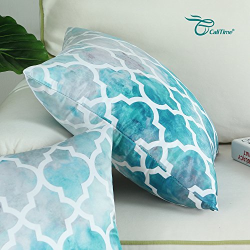 Pack of 2, CaliTime Cushion Covers Throw Pillow Shells 18 X 18 Inches, Tie-Dyed Modern Geometric Style Quatrefoil, Teal