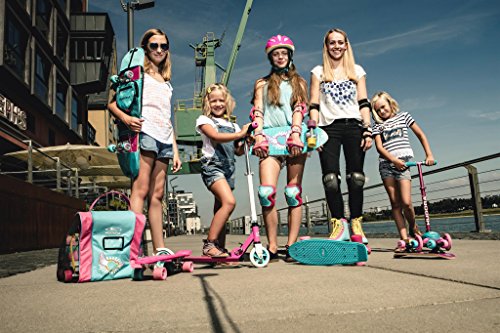 -. Feature : A great gift for children:3-wheel stable design with high-quality materials and attractive look keep kids in a safe, joyful and healthy gliding experience. / Lean-to-steer mechanism: It is easy for kids to turn right and left. / Fun & Soft grips: The soft silicon screw threads grips are for protecting your child's tender hands against abrasion and fatigue. / Anti-skid deck: The sanding deck surface not only provide a more comfortable glide experience, but ensure your child's safety. / High weight capacity & Adjustable T-bar: 50 kg (110lbs) weight capacity and the T-bar can be adjust to 51, 56, 61 & 66cm to accommodate children as they grow.