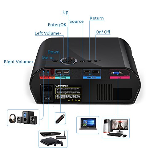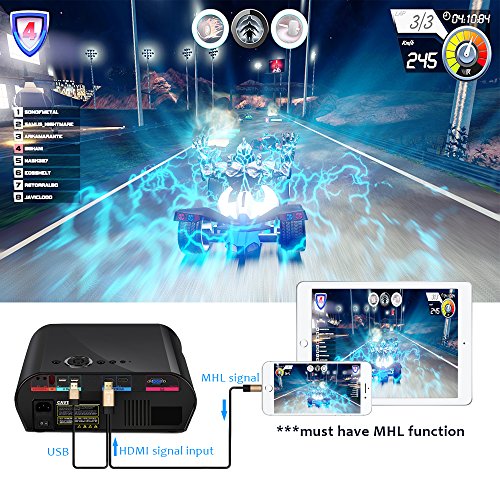 MULTIMEDIA CONNECTION & MULTIPLE INPUTS: Support HDMI/VGA/AV/USB. Dual HDMI & USB ports design makes it more convenient. Multimedia support photo, music,movie,e-book. Connect your Computer / Laptop / Mobile / iPhone / iPad / Blu-ray DVD Player to enjoy video or movie; Connect PlayStation PS3 PS4 or X-Box X-360 X-One via HDMI port to enjoy games on so big screen. PLEASE NOTE you need a wireless HDMI dongle(not included) to connect projector with smartphone and tablet.