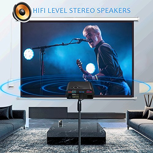 UPDATED FAN SOUND & HIFI LEVEL STEREO AUDIO: Compared to other projectors on the market, GooDee movie projector is ultra silent. We recommend using external speakers for better results. This translates into less distraction during viewing movies or playing games.Built-in stereo speakers(4Ω,5W) with SRS Sound.SRS is currently the best sound technology.