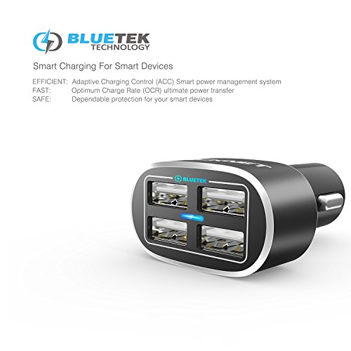 Tecknet PowerDash D2 USB Car Charger with BLUETEK technology maximizes compatibility with Android, Apple and other devices to ensure recharging at maximum speed (5V 2.4A/Each USB Port, 9.6A in total)