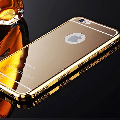 iPhone 6 6s Case with 9H Tempered Glass Mirror Back Cover and Front Screen Protector, Roybens Luxury Detachable Metal Aluminum Bumper + Hard Back Case, 360 Degree Full Protective Shockproof Gold