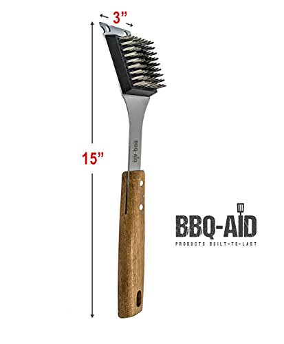 - PREMIUM DESIGN – Our wood grill brush and bbq tools to look good and function properly. From the ergonomic wooden handle to the sleek stainless steel bristles, our barbecue grill brush works every angleWooden Grill Brush