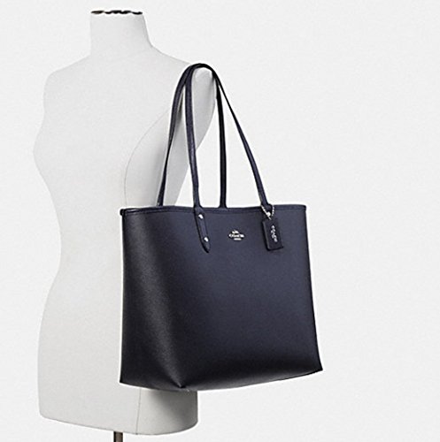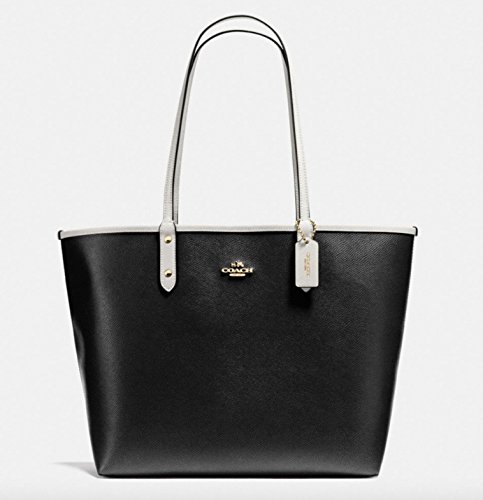 -. Brand : -. Color : Black White -. Department : womens -. EAN : 0889532518470 -. Feature : Coated Canvas / Gold tone Horse & Carriage emblem on front / Dual handles with a drop of 9.5 inches / Removable zip pouch / Measures approximately 13" (L) at bottom x 17" (L) at top x 11.5" (H) x 6" (W) -. ProductGroup : Shoes -. ProductTypeName : HANDBAG -. Size : Large -. Title : Reversible City Tote in Coated Canvas (Black/White/Gold) -. UPC : 889532518470