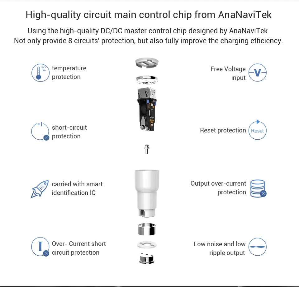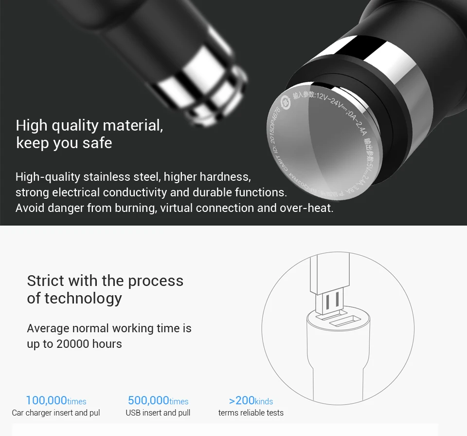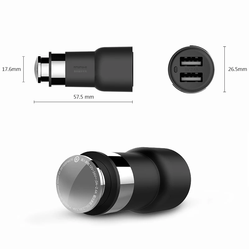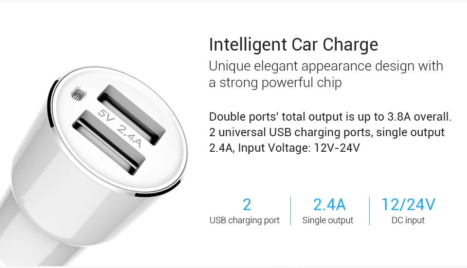 Output:5V 2.4A, 3.8A max for 2 ports