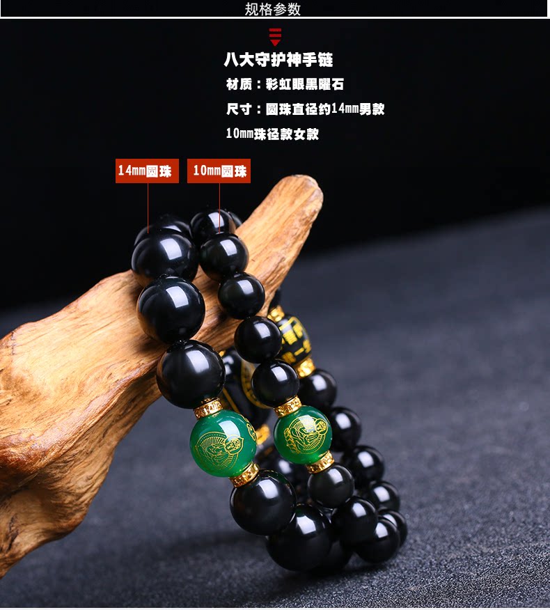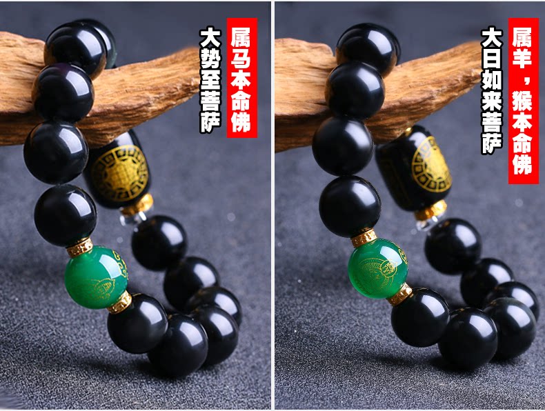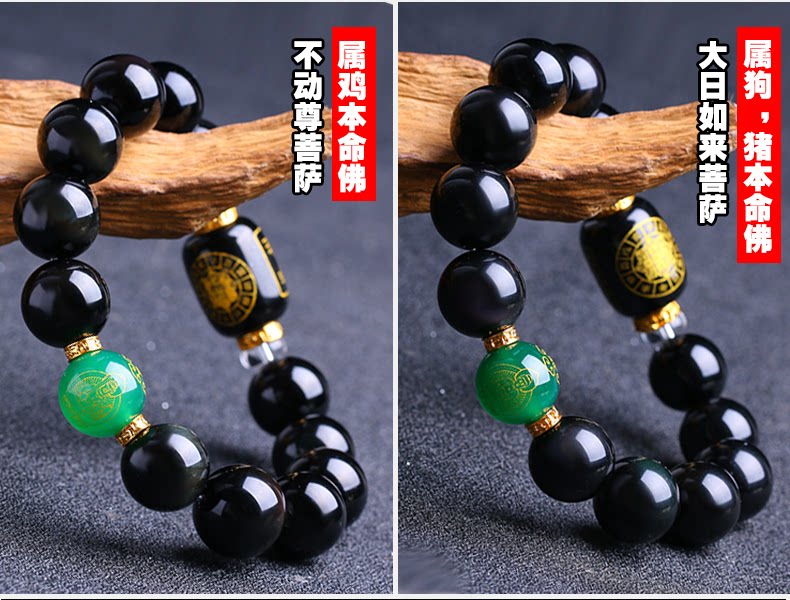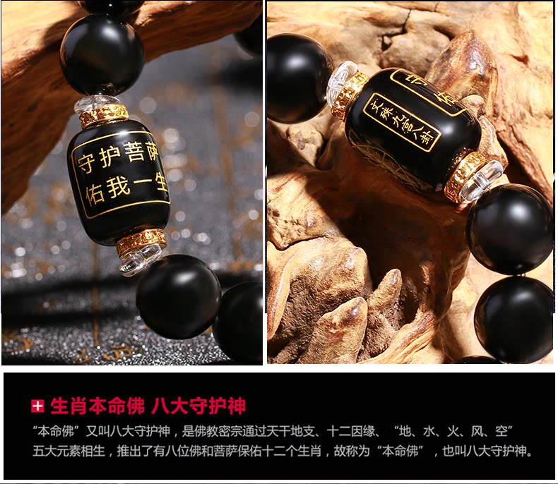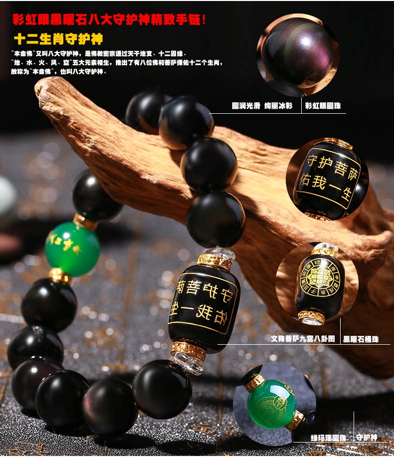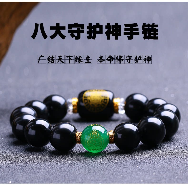 天然黑曜石手链十二生肖属鸡八大守护神手串本命佛珠水晶男女