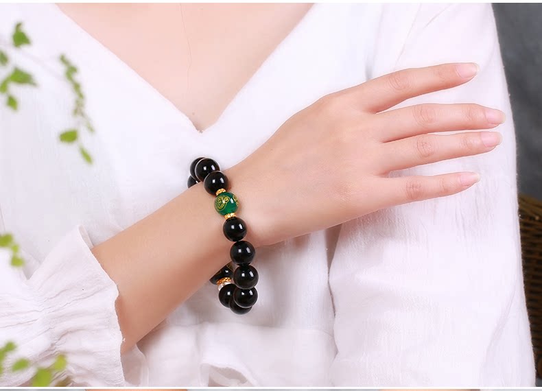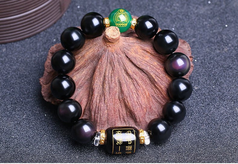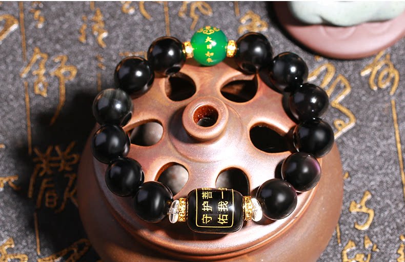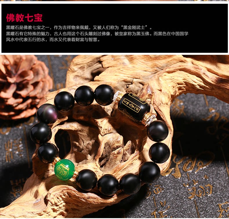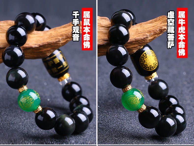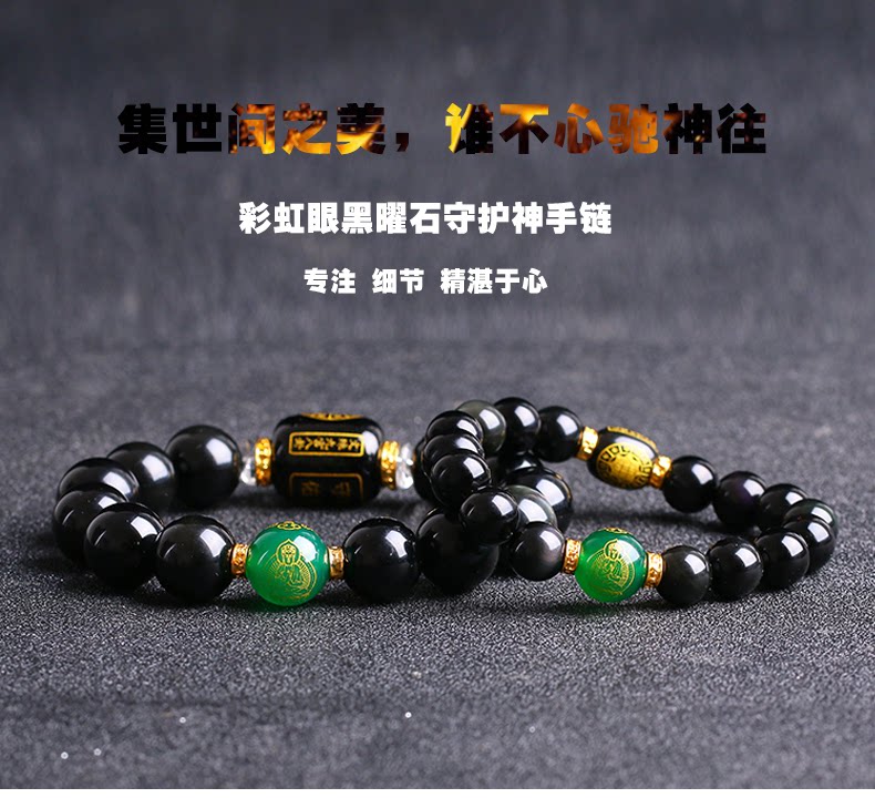 天然黑曜石手链十二生肖属鸡八大守护神手串本命佛珠水晶男女