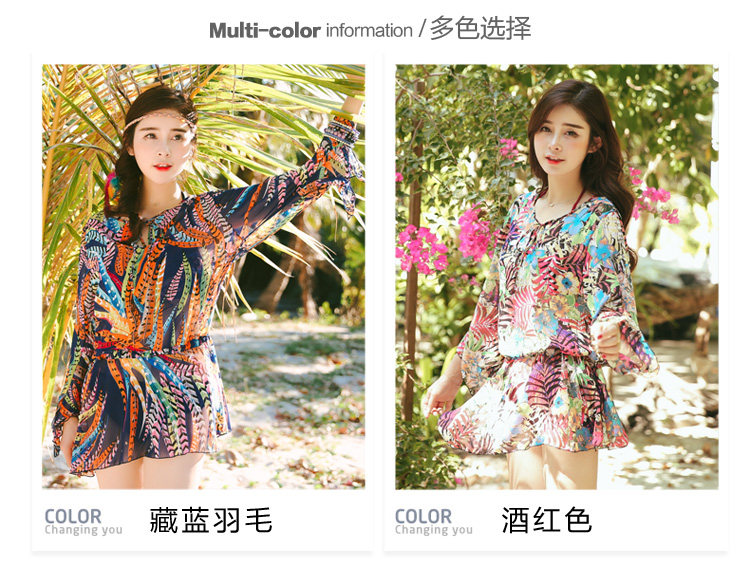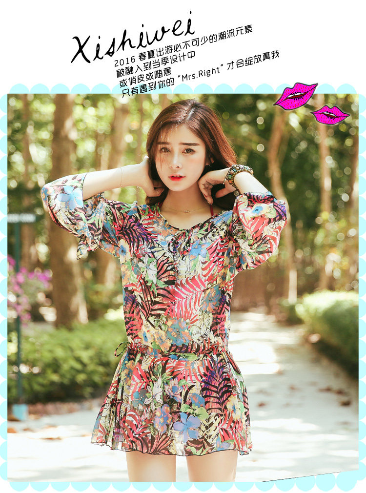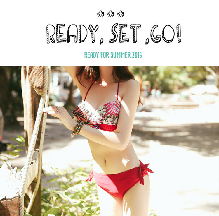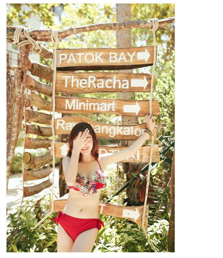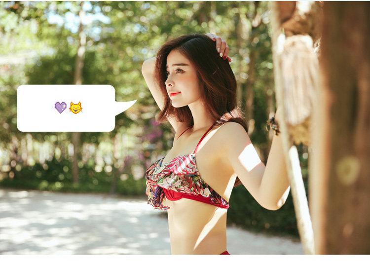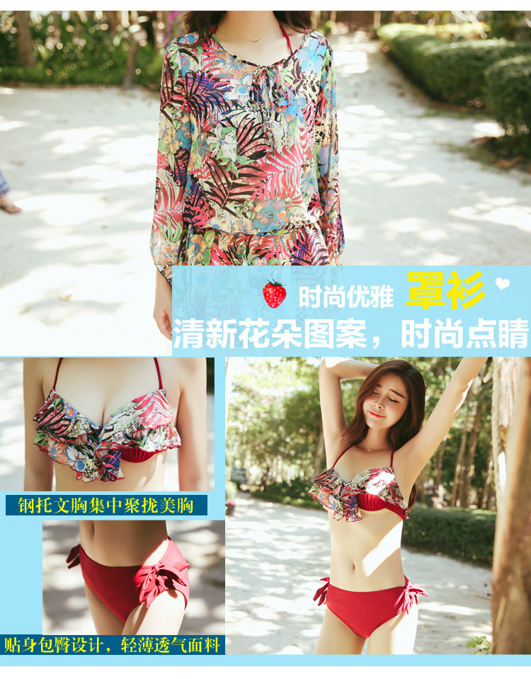夏季新款泳装女性感印花钢托聚拢显瘦比基尼裙式三角三件套游泳衣