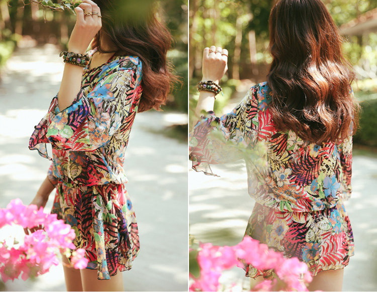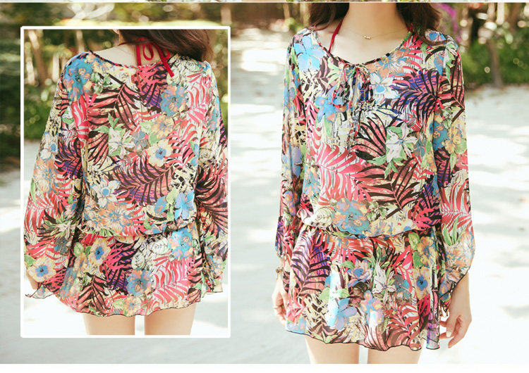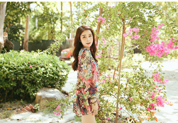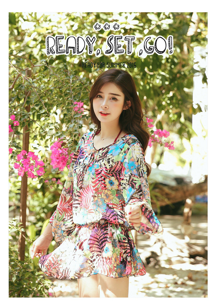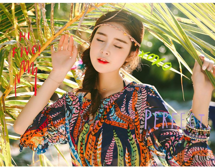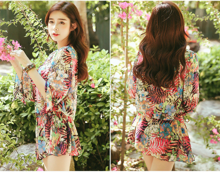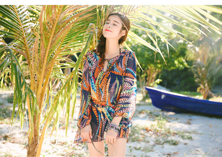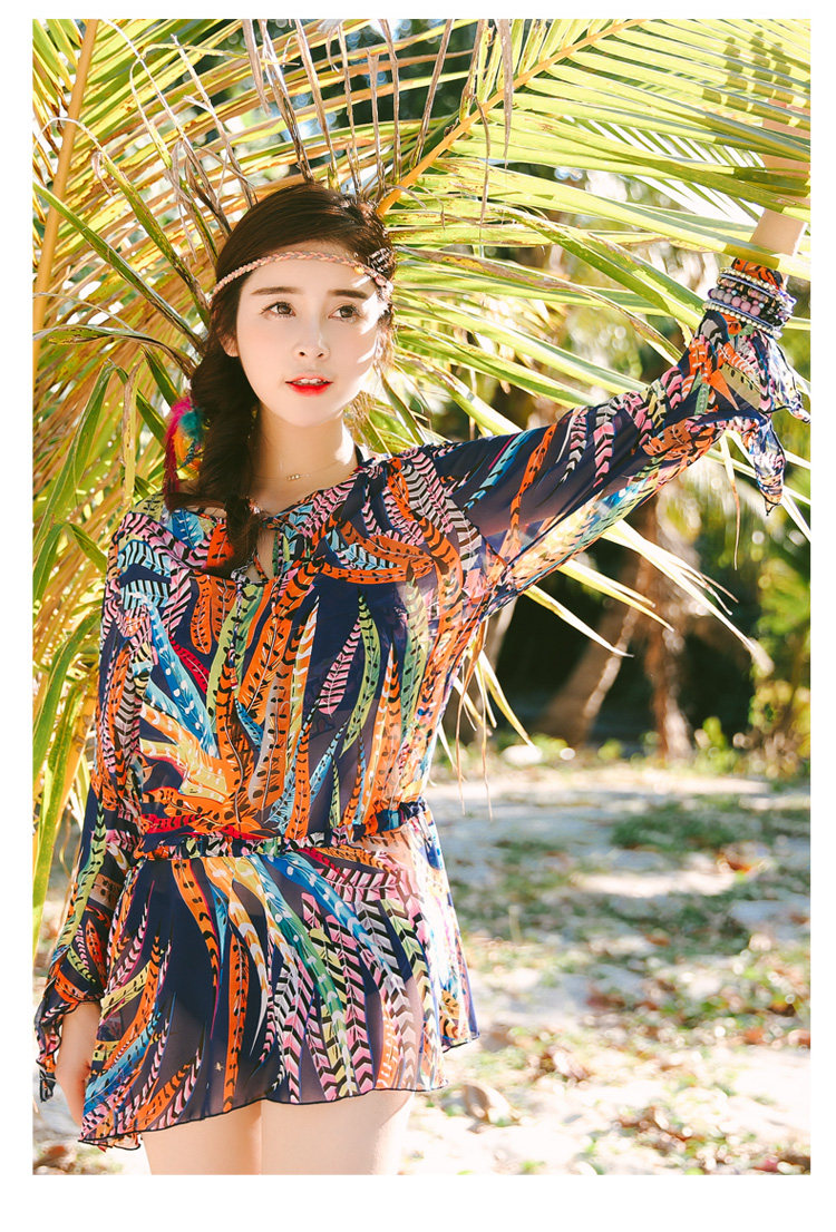 夏季新款泳装女性感印花钢托聚拢显瘦比基尼裙式三角三件套游泳衣