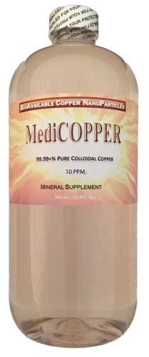 Studio : Nutraneering Publisher : Nutraneering Binding : Health and Beauty Product Description New, unopened 500 milliliter (mL) / 16.9 Fluid Ounce (Fl Oz) clear BPA-free PETE bottle of MediCOPPER. MediCOPPER is 10 ppm of 99.99 % pure bio-available Copper nanoparticles colloidally suspended in pure, pharmaceutical grade water. Top is triple sealed: opening is sealed with pressure sensitive sealing disk covering opening which reads "SEALED FOR YOUR PROTECTION" and cap is sealed to neck of bottle with heat shrink neck band that also reads "SEALED FOR YOUR PROTECTION". Shelf life should be several years for unopened bottles. Not photo-sensitive. DO NOT ALLOW THIS PRODUCT TO FREEZE...all of the Copper nanoparticles will no longer be colloidally suspended after the frozen product thaws and the liquid will turn clear. Recommended servings is one tablespoon (15 mL) for adults, or one teaspoon (5 mL) for children, taken on an empty stomach to maximize adsorption in the gastro-intestinal tract. Wait 20 to 30 minutes before eating or drinking. One tablespoon provides 150 mcg of 99.99 % pure Copper, one teaspoon provides 50 mcg of 99.99 % pure Copper. 0