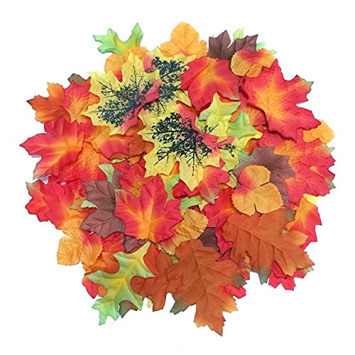 Luxbon 100pcs Artificial Autumn Fall Maple Leaves Multi Colors Great Autumn Table Scatters for Fall Weddings & Autumn Parties