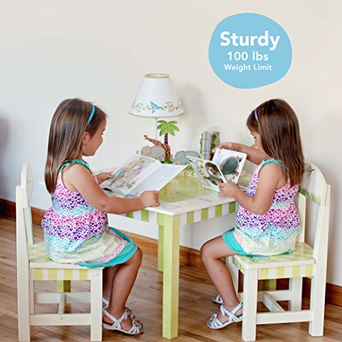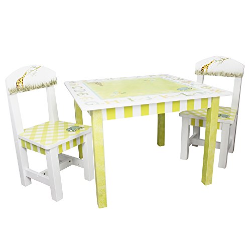 Studio : Teamson Design Corp - DROP SHIP Publisher : Teamson Design Corp - DROP SHIP Binding : Toy Product Description The perfect place for your child to learn their ABC’s and 123’s. Fantasy Fields' Alphabet Table and Set of 2 Chairs features a unique white and green weathered look. Quality wood, hand painted and hand carved, this is sure to be a favorite spot. Some assembly required. Perfect for ages 3 and up. 0