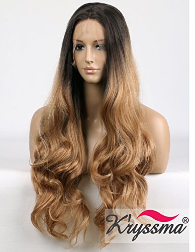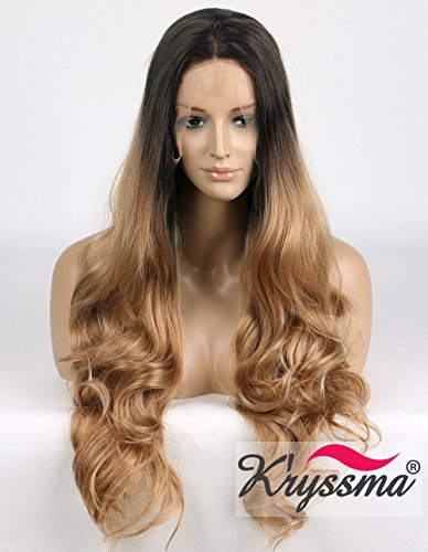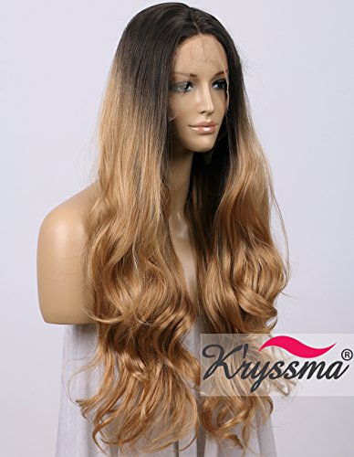 K'ryssma Natural Looking Ombre Blonde Lace Front Wigs Synthetic-Dark Roots Brown to Blonde Heat Resistant Half Hand Tied Long Wavy Glueless Synthetic...