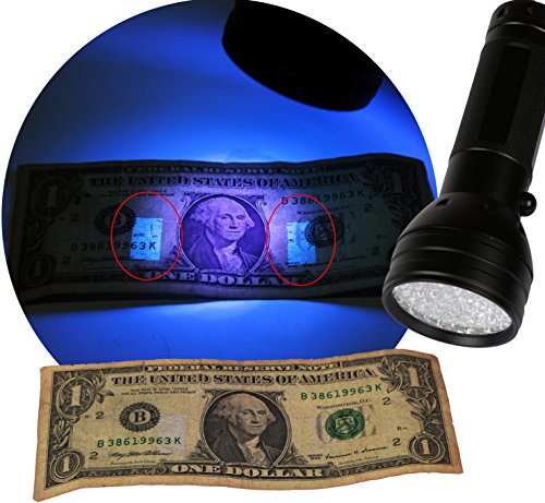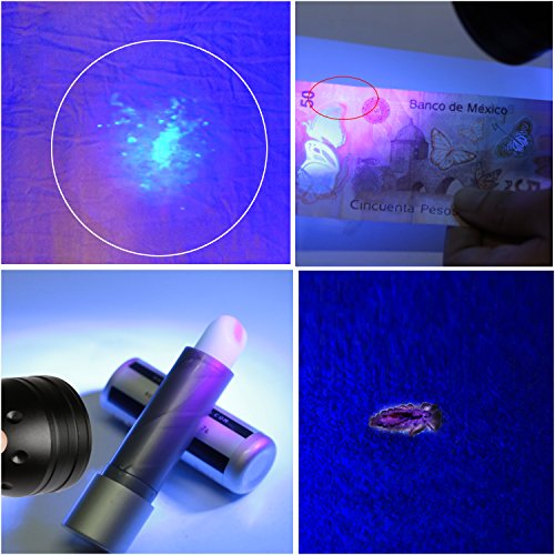MULTI-FUNCTIONAL - Detects leaks, residues, and stains hidden on carpets, bedding, and clothes. Identifies counterfeit currency, fraudulent IDs. Detects fluorescer in tissue paper, cosmetics and reveals scorpions at night!