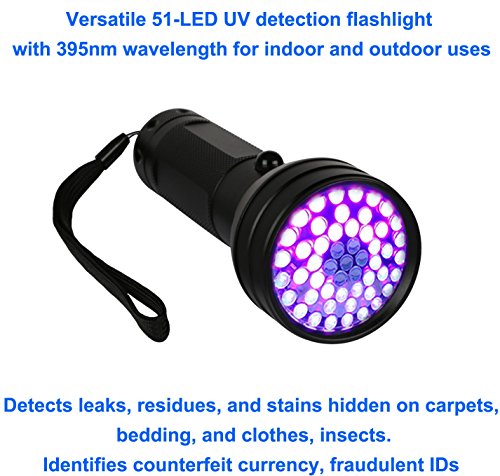 COMPACT & LIGHTWEIGHT- Versatile 51-LED UV detection flashlight with 395nm wavelength for indoor and outdoor uses.