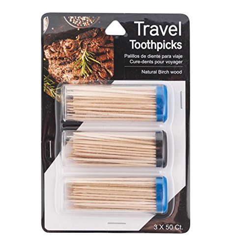 Items 4U Travel Toothpicks in Capped Containers, Natural Birch Wood, 50 Count, 3 Containers Total 150 count.
