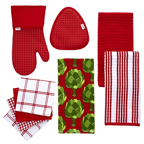 - COORDINATES WITH T-FAL TEXTILES COLLECTION. The entire color collection of T-Fal textiles includes dish cloths, striped and printed kitchen dish towels, and heat protection. The T-Fal color collection offers a wide variety of colors sure to coordinate with your existing kitchen decor.