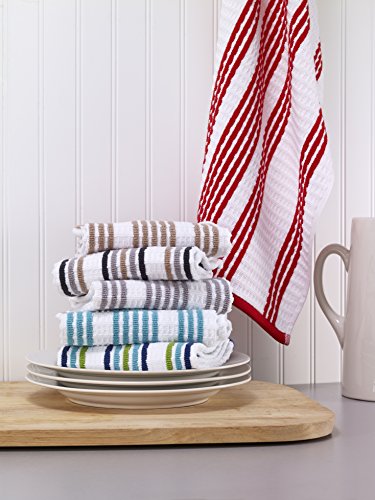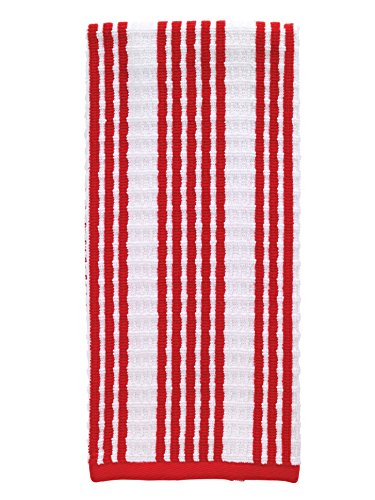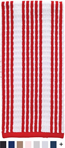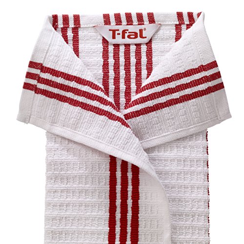 T-fal Textiles Striped Waffle 100% Terry Cotton, Highly Absorbent, Anti-Microbial, Oversized Kitchen Towel, 16" x 28", Red