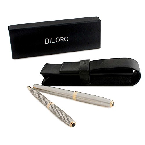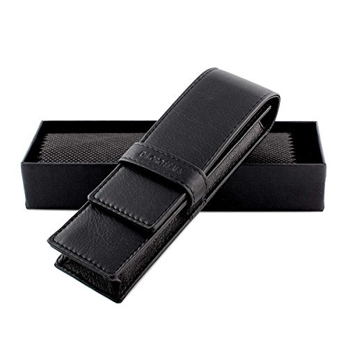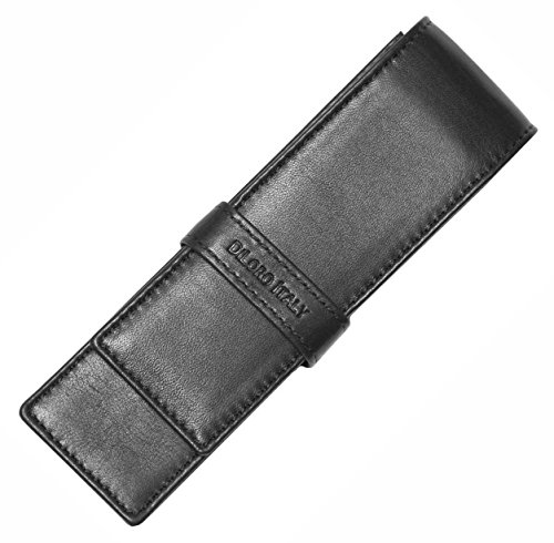 Pen Case by DiLoro Italy Leather Pencil Fountain Pen Holder Double Two Pens Black