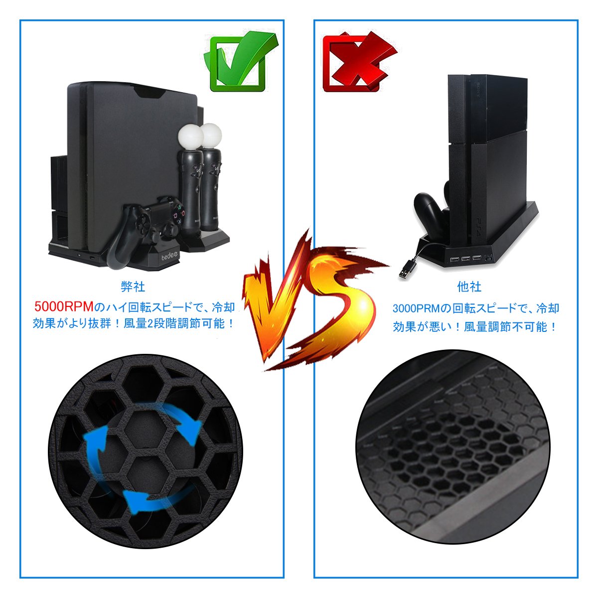 - 【冷却効果抜群】3000RPMの回転速度より、弊社の冷却ファンは5000RPMのハイ回転速度で、もっと良い冷却効果を実現します。また、他社の設計にはPS4とPSVRのユニットの距離が近く、熱的負荷は高いです。弊社の製品にはPS4とPSVRのユニットを分け、熱的負荷を減らします。故障などの問題を最小限に。