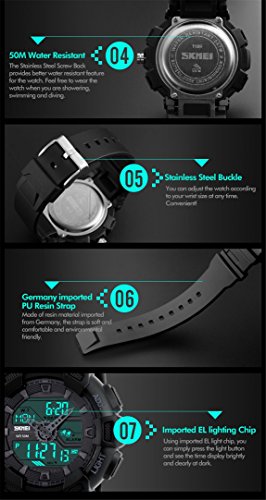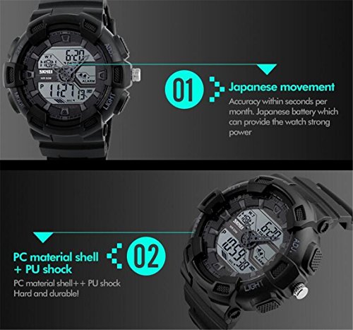 MORE COMFORTABLE AND DURABLE:100% brand new and high quality. Imported Japanese CITIZEN Movement and battery are used in sports watch, this watch will serve for more than 3 years. And the special silicon watch strap provided is super soft, flexible and durable, which is great for daily wear