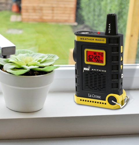 - Title : La Crosse 810-805 NOAA/AM/FM Weather RED Alert Super Sport Radio with flashlight, USA-made IC chip for High Quality Digital reception, rubberized black finish, earphone jack and hands-free included lanyard