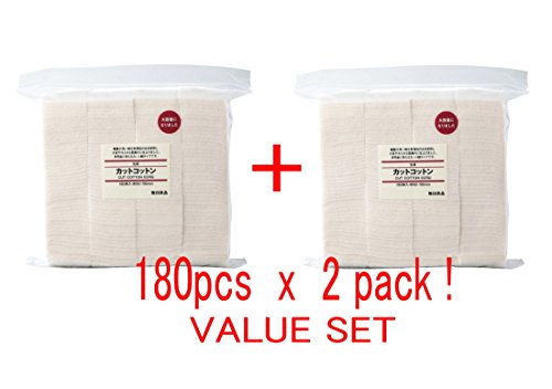 -. Title : MUJI Makeup Facial Soft Cut Cotton Unbleached 60x50 mm 180pcs x 2 Packs (Total 360 Sheets) Value Set