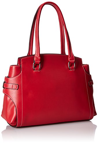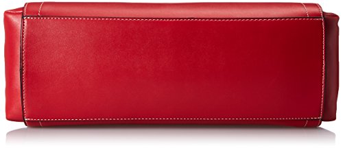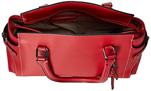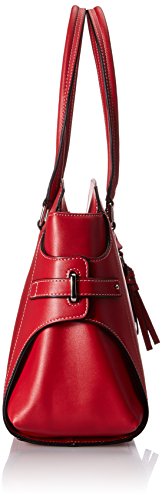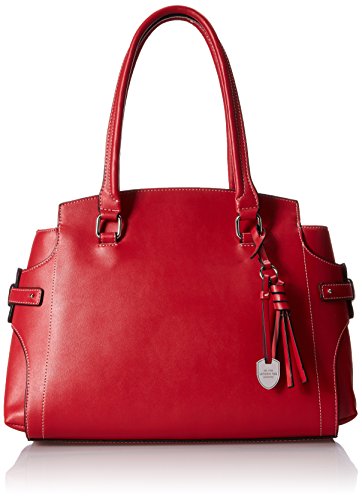 Kingston triple satchel, smooth glazed with linen or metallic tooled emboss gusset and tassel fob.