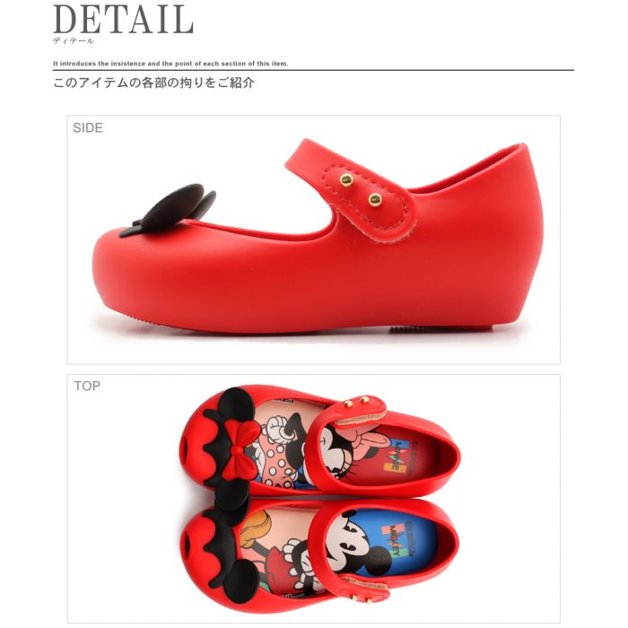 패션잡지에서도 대인기의《메릿사》(MELISSA)의 베이비키즈(어린이용)의 미니 《메릿사》(MINI MELISSA)보다「울트라 걸+디즈니 트윈즈 BB」입니다.어퍼(upper)에 미키와 미니의 모티브가 크게 디자인 되고 내리고, 디즈니 좋아해는 참을 수 없는 한걸음입니다.