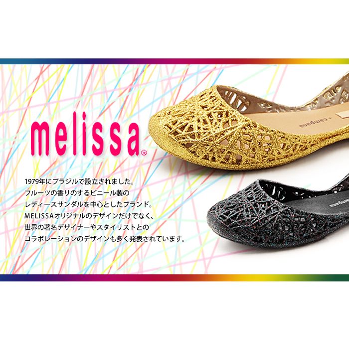 ''11259163''1979년에 브라질에서 설립되었습니다.후루츠 의 향기가 하는 비닐제의 레이디스 샌들을 중심으로 한 브랜드.MELISSA오리지날의 디자인뿐만 아니라,세계의 저명 디자이너나 스타일리스트와의 콜라보레이션의 디자인도 많이 발표되어 있습니다.