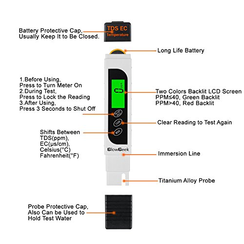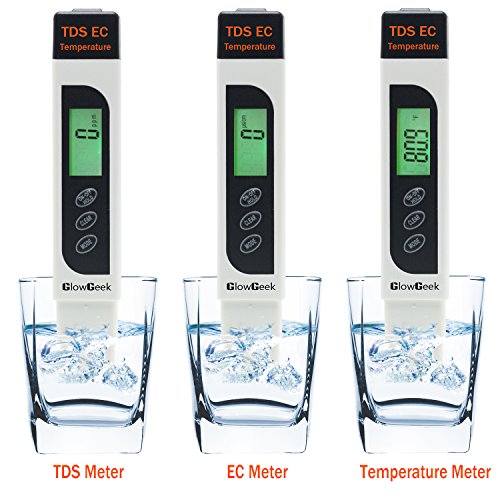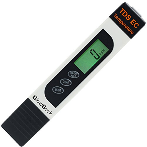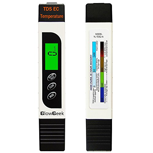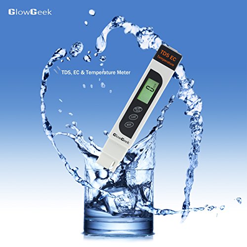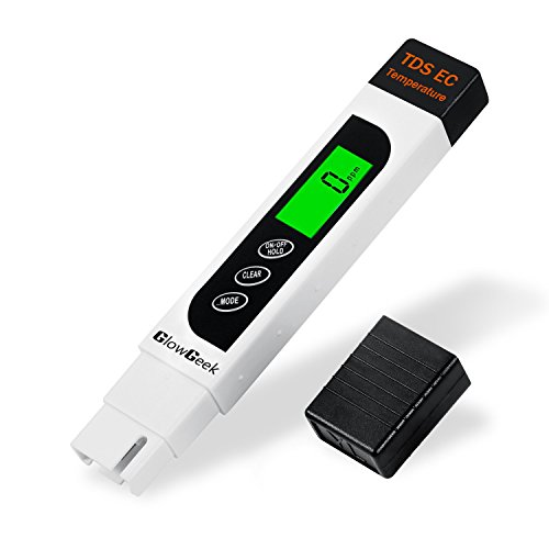 GlowGeek Professional Quality TDS, EC & Temperature Meter, Water Quality Test Meter,0-9990ppm.Accurate and Reliable Water Test Meter. Ideal for Drinking Water, Aquariums - White