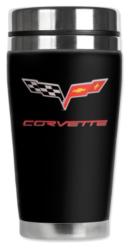 Mugzie Corvette C6 Logo Travel Mug with Insulated Wetsuit Cover, 16 oz, Black