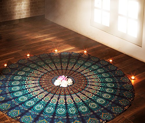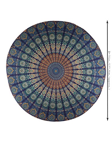 Indian Blue Mandala Round Roundie Beach Throw Tapestry Hippy Boho Gypsy Cotton Tablecloth Beach Towel Round Yoga Mat By Rajrang