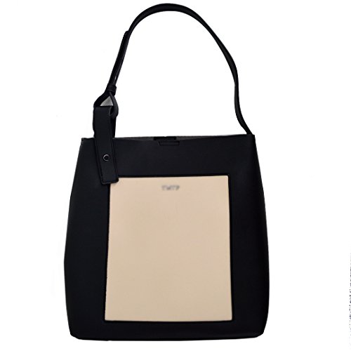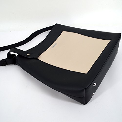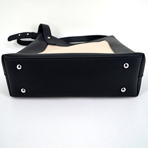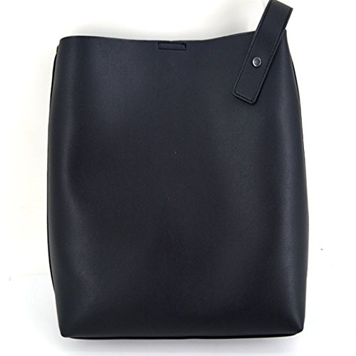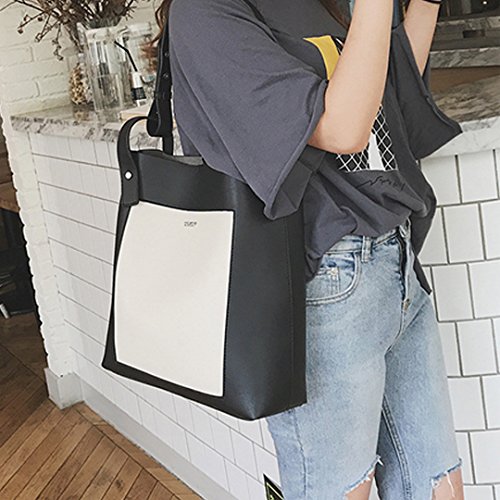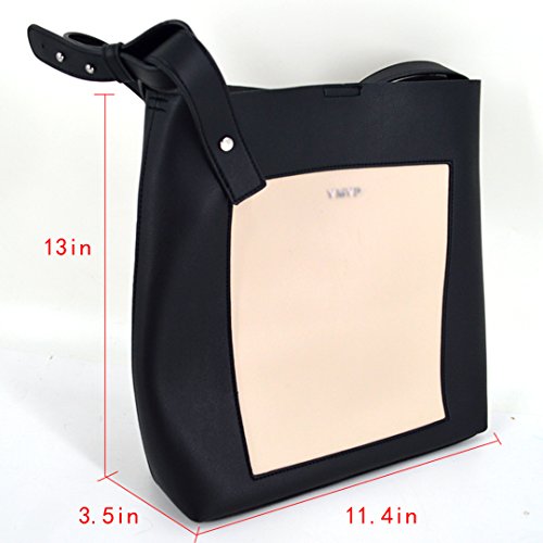 YAOSEN Women Contrast Color Shoulder Bag Leisure Bucket Tote Bag (Black)