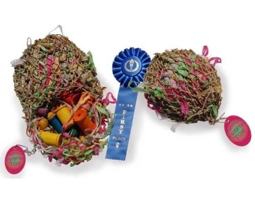 -. Binding : Misc. -. Brand : Bonka Bird Toys -. EAN : 3512009199649 -. Feature : Dimensions: 6" Dia. x 11" High. / Best New Bird Product 2010 Global Pet Expo!. / Jute net ball stuffed full of colorful shredded paper and food colored dyed wooden beads, spools, blocks, buttons and much more. / This will keep your bird busy for weeks foraging for the hidden treasures inside. / Quick link for easy placement. -. Label : Bonka Bird Toys -. Manufacturer : Bonka Bird Toys -. PackageQuantity : 1 -. ProductGroup : Pet Products -. ProductTypeName : PET_SUPPLIES -. Publisher : Bonka Bird Toys -. Studio : Bonka Bird Toys -. Title : 55100 Med. Super Shredder Ball Bird Toy cages birds foraging toys parrot amazon