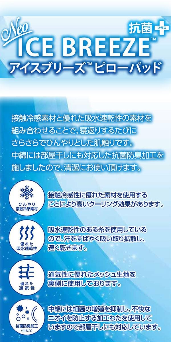 | 接触冷感素材と、優れた吸水速乾性の素材を組み合わせることで、寝返りするたびに、さらさらでひんやりとした肌触りです。中わたには、部屋干しにも対応した抗菌防臭加工を施しましたので、清潔にお使い頂けます。 |