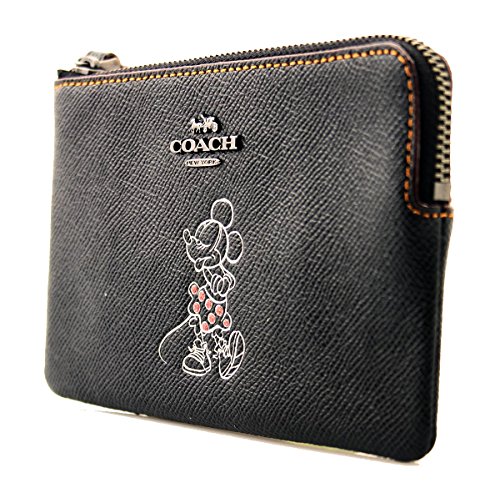 Coach x Disney Corner Zip Leather Wristlet with Minnie Mouse in Black