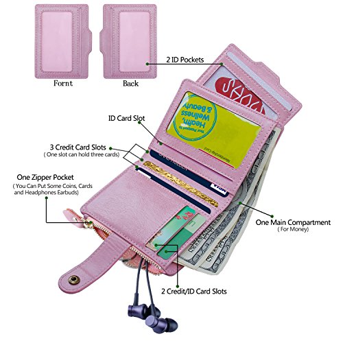 - [STRUCTURE] - ✅Multifunctional with 5 card slots, 1 ID window, 1 bill section, 1 zip coin pocket, 1 Removable card sleeve have 2 card slots. Keep your credit cards and cash, coins, earphone and receipts well organized.